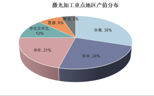 2023-2030年中國(guó)激光設(shè)備市場(chǎng)分析及前景預(yù)測(cè)報(bào)告指出,2023年我國(guó)激光加工重點(diǎn)地區(qū)產(chǎn)值主要分布在華南、華中及華東地區(qū),分別占比30%、24%和21%,此外,華北及東北地區(qū)產(chǎn)值占比12%,西部地區(qū)近幾年也開(kāi)始呈現(xiàn)良好的發(fā)展態(tài)勢(shì),2023年激光加工產(chǎn)值占比8%。