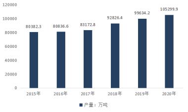圖表 7:2015-2020年中國(guó)粗鋼產(chǎn)量