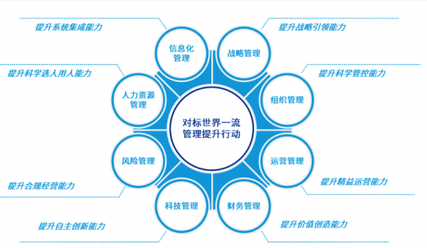 按《通知》要求:到2022年,國(guó)有重點(diǎn)企業(yè)管理理念、管理文化更加先進(jìn),管理制度、管理流程更加完善,管理方法、管理手段更加有效,管理基礎(chǔ)不斷夯實(shí),創(chuàng)新成果不斷涌現(xiàn),基本形成系統(tǒng)完備、科學(xué)規(guī)范、運(yùn)行高效的中國(guó)特色現(xiàn)代國(guó)有企業(yè)管理體系,企業(yè)總體管理能力明顯增強(qiáng),部分國(guó)有重點(diǎn)企業(yè)管理達(dá)到或接近世界一流水平。