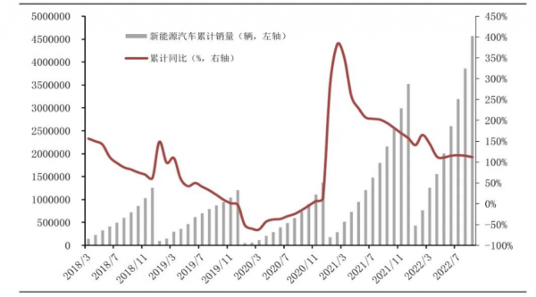 2022年中國新能源汽車?yán)塾?jì)銷量情況