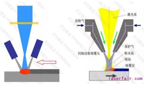 傳統(tǒng)激光熔覆(左)與高速激光熔覆(右)的區(qū)別