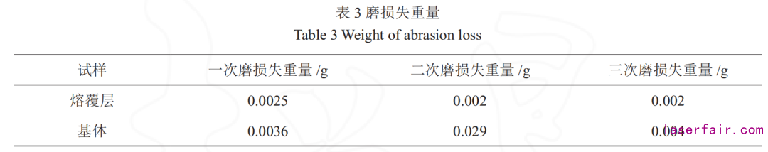 3.4 熔覆層耐磨性能