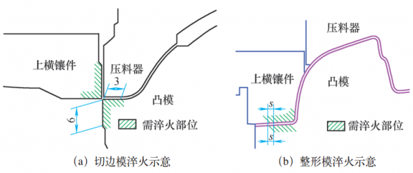 汽車模具上的鑲件表面淬火,主要指切邊模的切邊鑲件刃口淬火和整形模的整形鑲件整形部位淬火,如圖4所示。