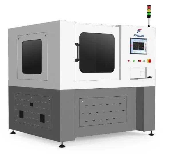 其中激光打孔機是該工序的核心設備,一般由五大部分組成:激光器、電氣控制系統(tǒng)、光學系統(tǒng)、投影系統(tǒng)和三維移動工作臺,這五個組成部分相互配合完成打孔任務。激光器負責產生激光光源,電氣控制系統(tǒng)主要負責對激光器供給電源和控制激光輸出,光學系統(tǒng)是將激光束精確地聚焦到光伏玻璃的加工部位上。