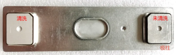 通過激光技術(shù)對(duì)表面氧化層進(jìn)行去除,可以使得極柱接觸電阻顯著降低,焊接良率顯著提升。與傳統(tǒng)人工打磨方式相比,激光清洗能將極柱表面耐腐蝕性能提升一倍以上,在清洗效率和成本方面也具有優(yōu)勢。光至科技YFPN-200-GM型號(hào)的激光器經(jīng)測試,清洗效率可以達(dá)到<2秒/個(gè)。