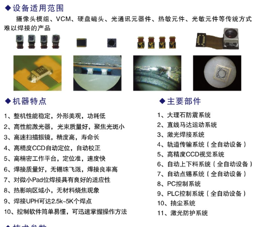 攝像頭模組微焊接、硬盤磁頭微焊接、CVM/光通訊元器件/熱敏元件/光敏元件微焊接等