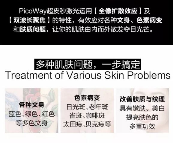 PicoWay超皮秒是擁有“雙波長(532nm/1064nm)+全息像素聚焦技術(shù)”的突破性祛斑美容激光,能用于祛除色素沉著、美白嫩膚和皮膚年輕化等,