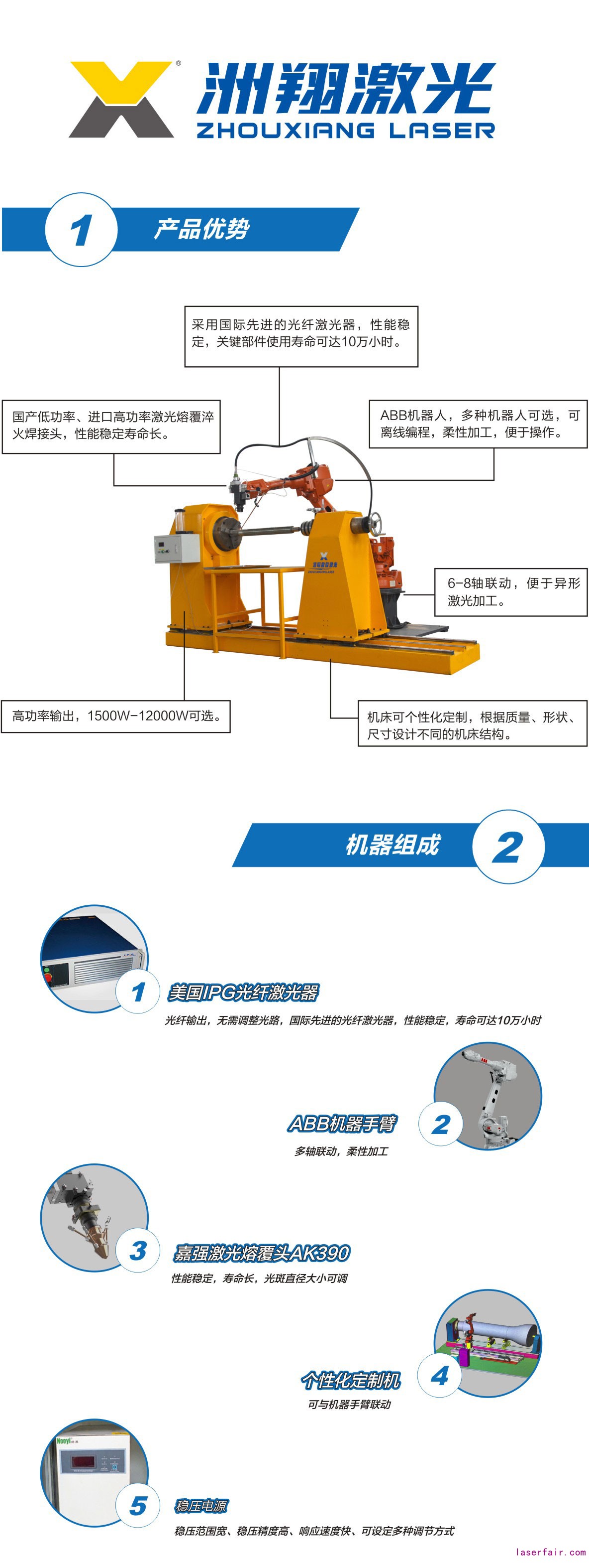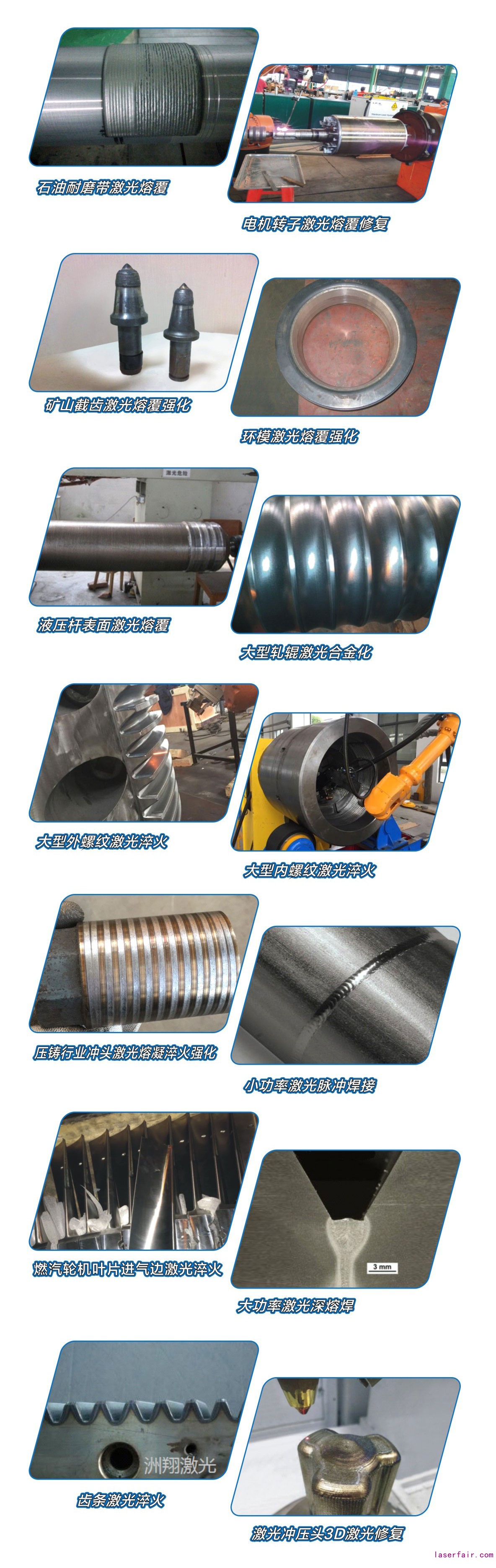 洲翔激光研發(fā)的激光熔覆淬火設(shè)備,用途廣泛,實(shí)用性強(qiáng)??梢詫?shí)現(xiàn)汽輪機(jī)葉片進(jìn)氣邊強(qiáng)化,石油耐磨帶激光熔覆,模具工作帶淬火強(qiáng)化等