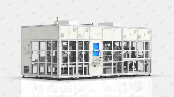 整機(jī)模塊集成化設(shè)計(jì),生產(chǎn)不同藍(lán)本電芯換型方便,2-3小時(shí)即可完成藍(lán)本物料換型。