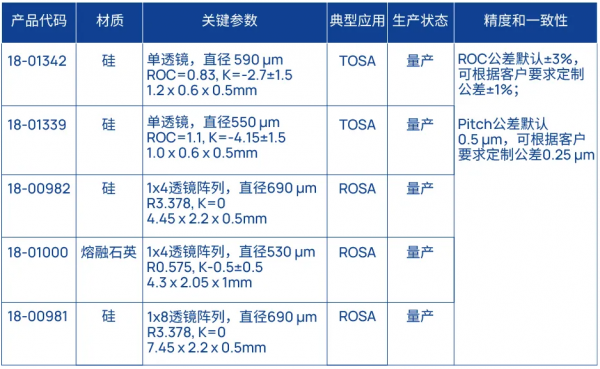 炬光科技推出適用于光通信的多款標(biāo)準(zhǔn)化硅材質(zhì)、熔融石英材質(zhì)透鏡與透鏡陣列產(chǎn)品