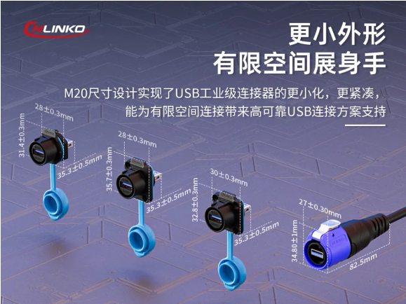 由于USB內(nèi)芯本身具備一定的尺寸大小,因而連接器本身無法做到過小,而M20尺寸已經(jīng)是現(xiàn)行工業(yè)級USB連接器中的極小型存在了。本款LP20-USB連接器,其整體外觀更小巧緊湊,是有限空間高速USB連接的推薦方案之選。
