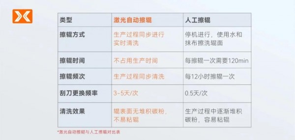 這是一個(gè)要求非常嚴(yán)格和精準(zhǔn)的加工過(guò)程,軋輥也因之成為鋰電池生產(chǎn)線上不可或缺的工藝裝備之一,且輥筒表面必須達(dá)到一定的光潔度。否則,在電池極片輥壓過(guò)程中,軋輥表面輕易粘附上的材料粉末,不僅容易造成后續(xù)輥壓的電池極片質(zhì)量異常,還會(huì)增加軋輥的磨損。傳統(tǒng)的清洗方法主要是采用人工擦輥的方式,這種方法存在著清潔難度大、效率低、環(huán)境污染等問(wèn)題。對(duì)于當(dāng)前競(jìng)爭(zhēng)激烈的鋰電廠商而言,亟需更加高效環(huán)保的軋輥清洗技術(shù),進(jìn)而提升鋰電池生產(chǎn)線的整體效率和產(chǎn)品質(zhì)量。激光清洗作為一種新興的清洗方式,為軋輥清洗帶來(lái)了革命性的變革。通過(guò)將激光打在軋輥表面,使附著在軋輥上的石墨等表面附著物吸收激光能量后氣化,從而與基體分離,達(dá)到清洗的目的。這一方式,高效、環(huán)保、無(wú)需停機(jī)、無(wú)接觸式清洗,具有人工擦輥無(wú)法比擬的優(yōu)勢(shì)。最關(guān)鍵的是,人工擦輥是隔一段時(shí)間進(jìn)行清洗,軋輥表面一定會(huì)存在碳粉堆積情形,而激光擦輥是實(shí)時(shí)清洗,不會(huì)累積碳粉,實(shí)時(shí)保障設(shè)備始終以“清潔”狀態(tài)運(yùn)行,為生產(chǎn)質(zhì)量提升助力!