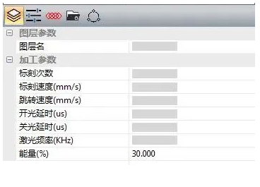 正常開機(jī)后,將能量調(diào)至30%以下,其余參數(shù)不變(操作界面如下圖所示),空打出光預(yù)熱約10分鐘,再進(jìn)行生產(chǎn)加工。
