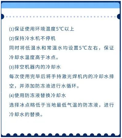 在還未完全進入冬天時,部分北方地區(qū)就已經(jīng)未雨綢繆,開始了手持激光焊的低溫保養(yǎng)工作。