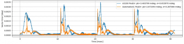 總而言之,Automation1 運動控制平臺在雷射掃描頭系統(tǒng)中的增加軌跡速率、提高伺服速率和降低所需的內插速率顯著改善了通常稱為“追蹤”或“跟隨”輪廓運動的性能。