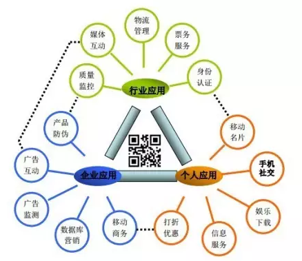 國外對二維碼技術(shù)的研究始于20世紀80年代末,我國對二維碼技術(shù)的研究開始于1993年。二維碼作為一種全新的信息存儲、傳遞和識別技術(shù),自誕生之日起就得到了世界上許多國家的關(guān)注。美國、德國、日本等國家,不僅已將二維碼技術(shù)應用于公安、外交、軍事等部門對各類證件的管理,而且也將二維碼應用于海關(guān)、稅務(wù)等部門對各類報表和票據(jù)的管理,以及商業(yè)、交通運輸?shù)炔块T對商品及貨物運輸?shù)墓芾淼鹊?。而信息獲取、網(wǎng)站跳轉(zhuǎn)、防偽溯源、優(yōu)惠促銷 、 手機電商、會員管理等都是它最主要的功能體現(xiàn)。