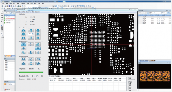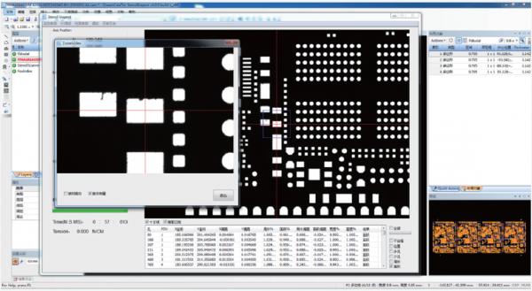 系統(tǒng)通開孔尺寸,位置等參數(shù)的測量,設(shè)定誤差范圍與參考值進行比較以判斷是否合格;點擊不良數(shù)據(jù),相機自動移動到該孔處,即可進行觀察及二次確認。配置雙遠心透鏡持續(xù)掃描,標(biāo)準PCB(240x180),測量速度為1s/FOV。