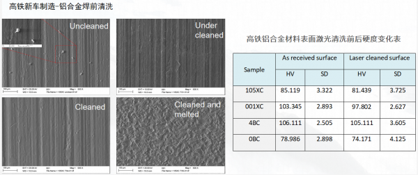 水滴激光作為國內(nèi)最早從事激光清洗相關(guān)工作的企業(yè)之一,早在19年就開始研發(fā)與跟進軌道交通領(lǐng)域的激光清洗技術(shù),在新車制造過程中的鋁合金焊前焊后清洗、二三級檢修過程中的車廂蒙皮選擇性除漆、轉(zhuǎn)向架焊縫清洗等不同工序中都有著扎實的工藝研究和豐富的應(yīng)用經(jīng)驗。